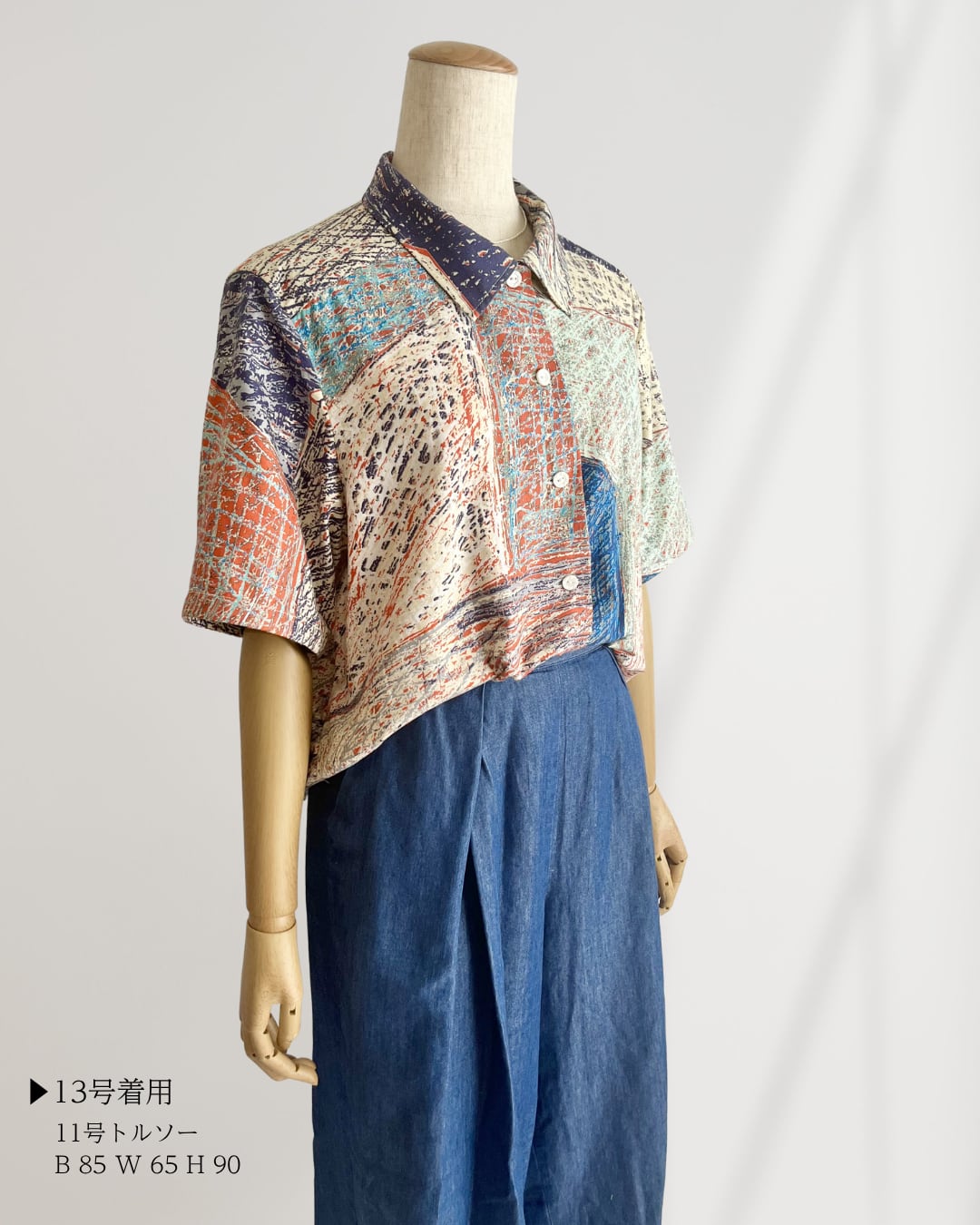 11号のトルソー(B85/W65/H90)が13号サイズを着用しています。