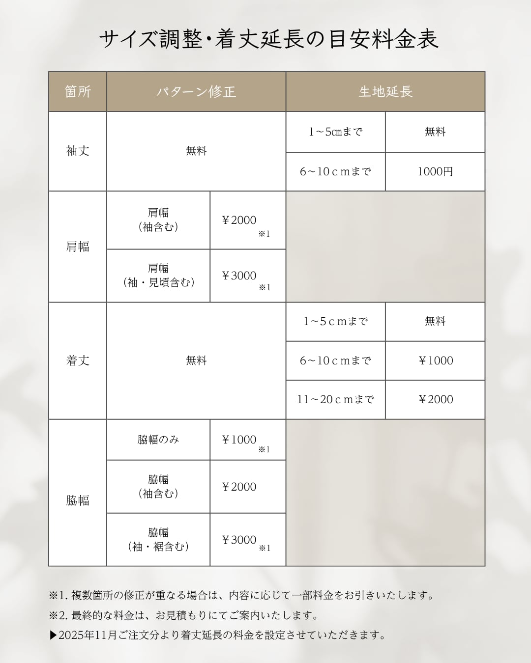 身幅や着丈の微調整も可能です。